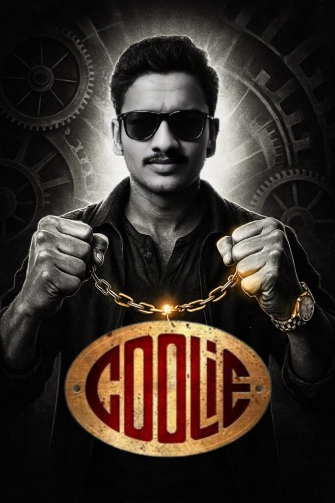 “A cinematic, high-contrast black and white poster of a powerful man standing confidently, wearing sunglasses and an open jacket, with both fists raised. A broken gold watch chain is stretched across his fists, symbolizing strength and rebellion. Futuristic mechanical gears form the dramatic background, with a glowing light source from behind. Replace the man’s face with the provided photo, keeping the same intense expression and cinematic lighting.”